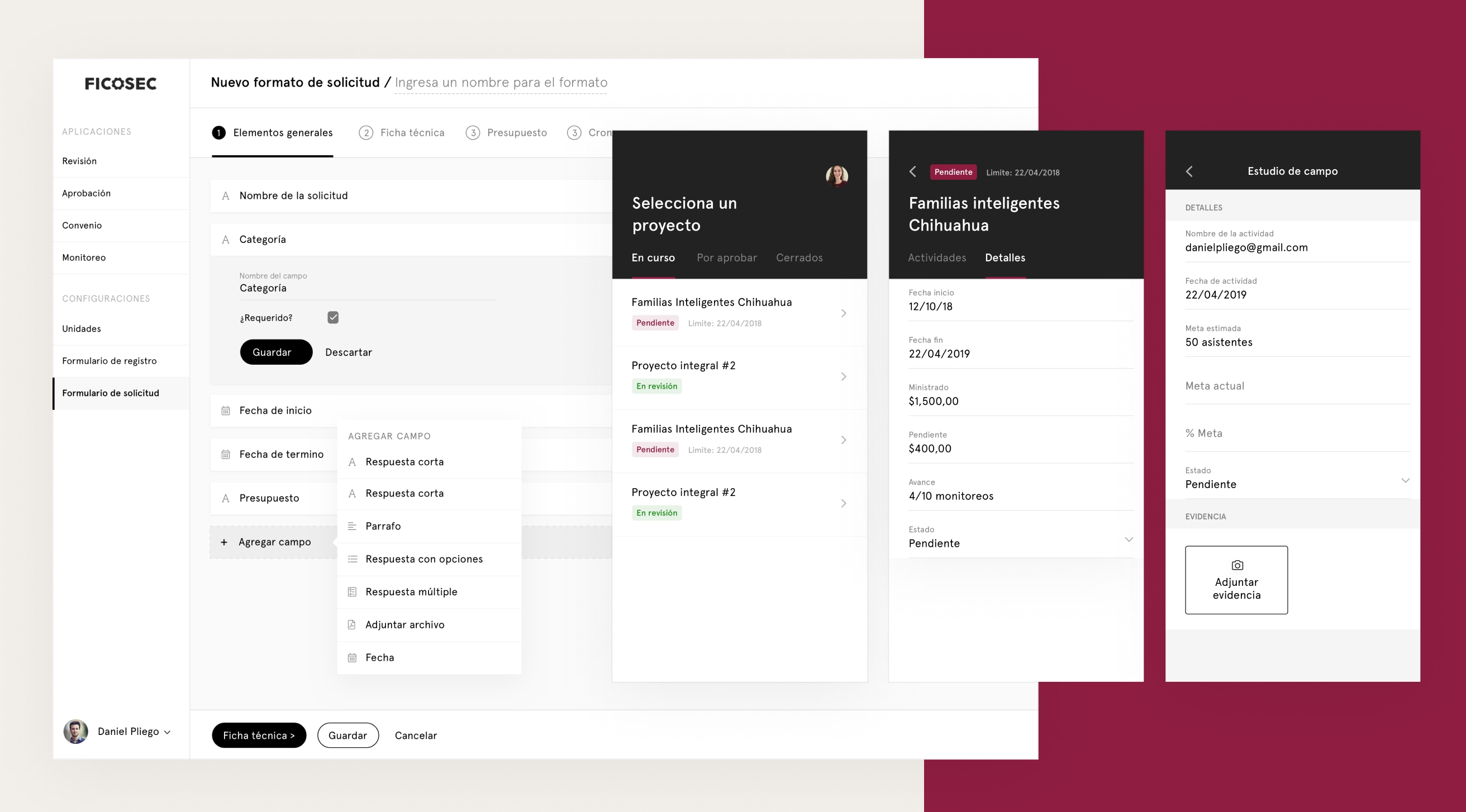 The challenge was to create a platform for a business owner or ONG to apply, and also build an admin for the Ficosec employees to manage all of the stages of a project, and review, accept or decline them.